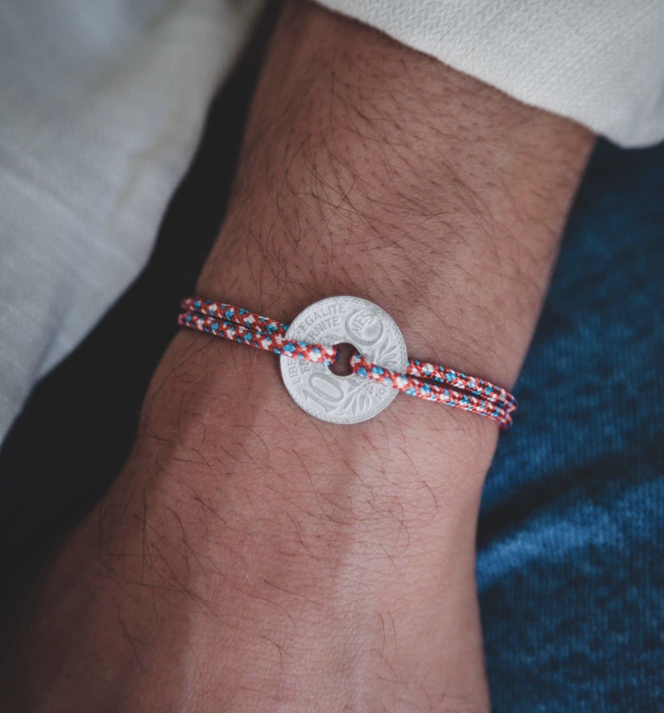 Le Sou Français bracelet avec pièce de monnaie en étain brut